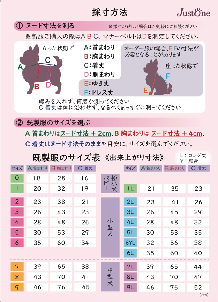 犬の採寸方法・既製服寸法